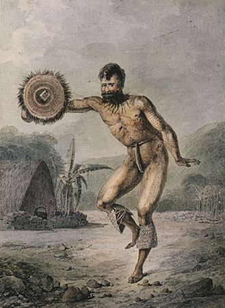 Photo 3 : Danseur hawaiien, aquarelle à partir du dessin de John Webber © Dixson Library, State Library of New South Wales.
