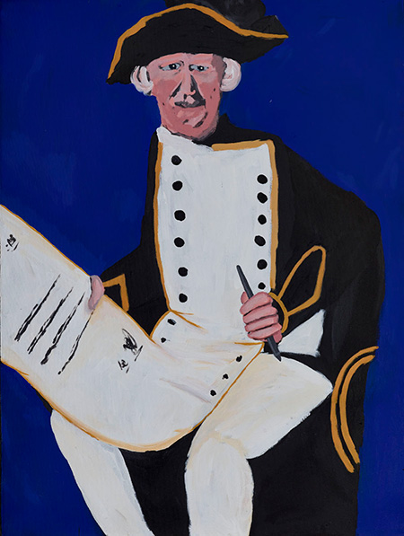 Et si… c’était ce que le James Cook de Vincent Namatjira (2) était en train d’écrire sur sa Déclaration, et non pas comme il le laisse à penser, les lignes qui ont permis l’appropriation des terres aborigènes.