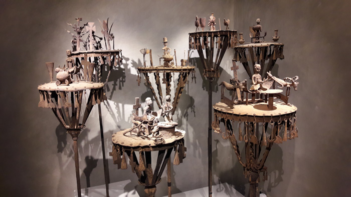 A priori mon intérêt n’est pas porté sur ces objets africains… une erreur car ces autels portatifs en fer forgé provenant de l’ancien royaume du Dahomey déroulent sous nos yeux de véritables et incroyables scènes !