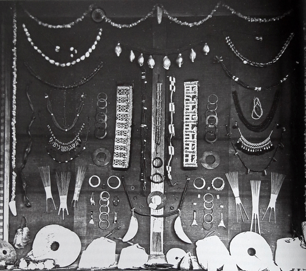 Photo 2 : Vitrine d’ornements collectés par les Frères Capucins, vers 1914.