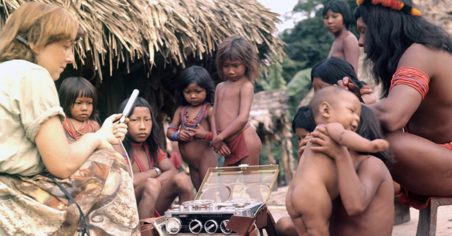 Photo 6 : Audrey Butt Colson enregistrant des enfants Wayana en 1963, © Audrey Butt Colson.