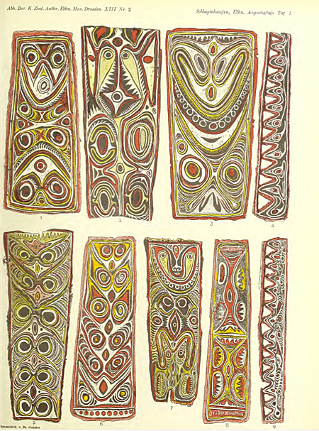 Otto Schlaginhaufen (1879-1973) est un anthropologue, entomologiste et botaniste suisse. En juillet 1909, il séjourne 15 jours dans le Sepik et rapportera 260 objets qui viendront enrichir les collections du musée d’ethnographie de Dresde. Il a également parcouru les Monts Torricelli et la région de la rivière Ramu.