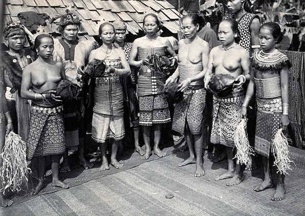 Lors de fêtes religieuses célébrant l’introduction d’une nouvelle tête trophée dans la maison longue commune, le rituel accompli faisait en sorte que la force spirituelle intense de la « couverture » transforme le potentiel de malveillance de la tête trophée en une bonne volonté empreinte de puissance et de fécondité.