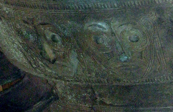 D’où provient ce motif de visages en forme de coeur ? L’hypothèse la plus admise voit dans ces visages une origine très ancienne en rapport avec La Lune de Penjeng, un imposant tambour en bronze, daté du III ème siècle avant J.C. (1,8m de hauteur et 1,6 m de diamètre).