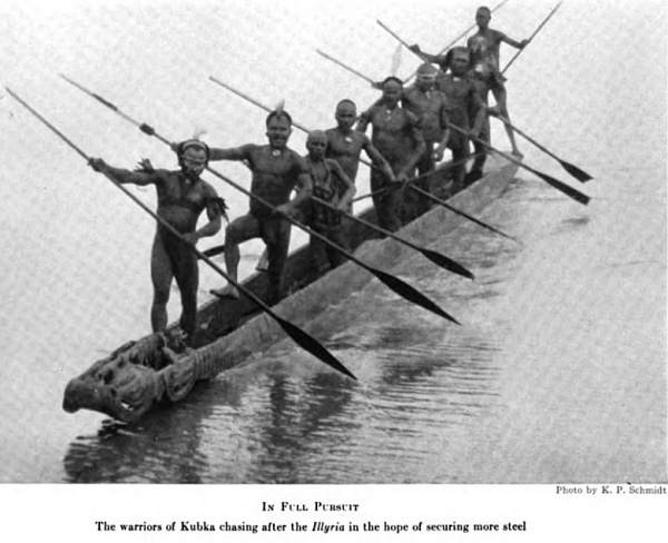 Après quelques difficultés de navigation, rejoignant le Sepik, l'Illyria parvient le 15 mai à Tambanum. Schurcliff affirme qu’il devait y avoir environ 900 habitants dans ce village et probablement près de la moitié les attendait sur le rivage… accueil impressionnant ! Mais c’est un mannequin grandeur nature en tissu d'écorce attaché à des cadres en... Lire la Suite →