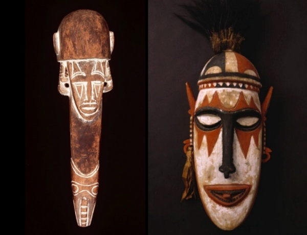 Les réalisations dans ces îles et régions de Papouasie orientale que nous venons d’évoquer se caractérisent par des ressemblances stylistiques qui permettent de regrouper des oeuvres sous l’appellation « style de Tami ». On nuancera néanmoins cette affirmation en ce qui concerne les oeuvres de la Baie de l’Astrolabe, région plus éloignée des deux autres bien qu’elle s’ouvre vers Umboï, Siassi et la côte occidentale de la Nouvelle-Bretagne. J’ai déjà eu l’occasion d’évoquer les masques de ces régions mais moins les sculptures.