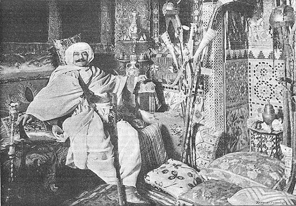 Photo 1 : Pierre Loti chez lui dans la salle turque, 1893. Fac similé d’une photographie de M. Dornac