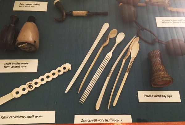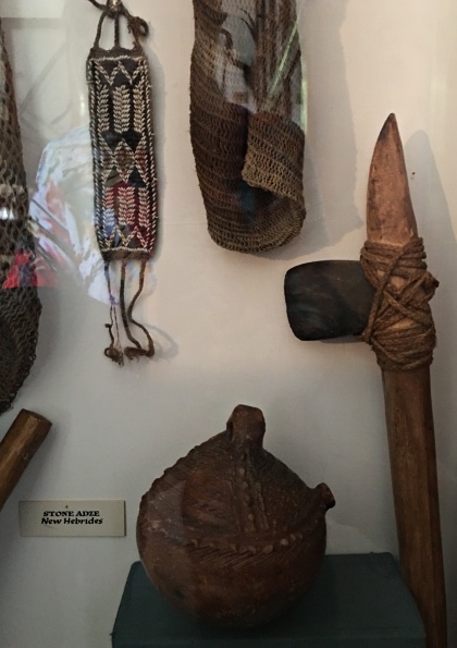 La majeure partie des objets ethnographiques proviennent d’Afrique et se déclinent classiquement autour du tabac et des armes. On trouve cependant quelques éléments de parure d’Afrique du sud, des peignes mais aussi des appuie-têtes ; et quelques rares objets de Papouasie (bilums, hache, parures), un tabua des Fiji, une massue cérémonielle des Cook, un contenant du Vanuatu…