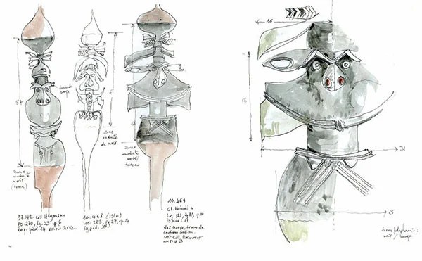 Grand dessinateur, il laisse notamment pour cette dernière exposition des témoignages sensibles de la culture matérielle kanak.