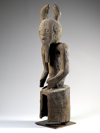Photo 13 : Masque dogon, Mali, 19è siècle ou avant – 98 cm, Bois, pigments, patine rituelle, Provenance : Collection Jean Willy & Marthe Mestach, Bruxelles © Montagut Galery.
