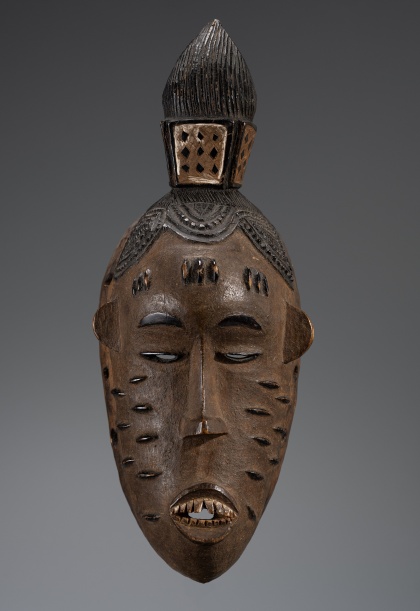 Photo 9 : Masque Salampasu R.D. Congo – 29cm, Bois, cuivre, Epoque présumée : Fin XIXe début XXe s. Provenance : Collection Leopold Haefliger, Lucerne ; Pierre Dartevelle, Bruxelles ; Marceau Rivière, Paris ; Collection privée, France.© Olivier Larroque.