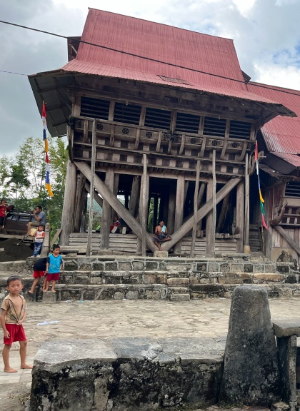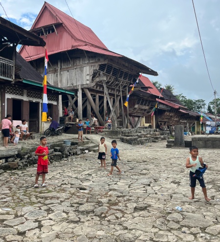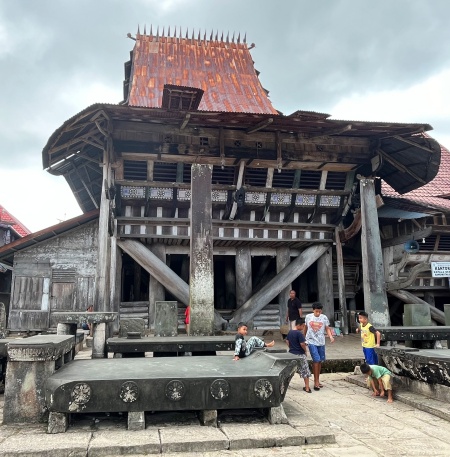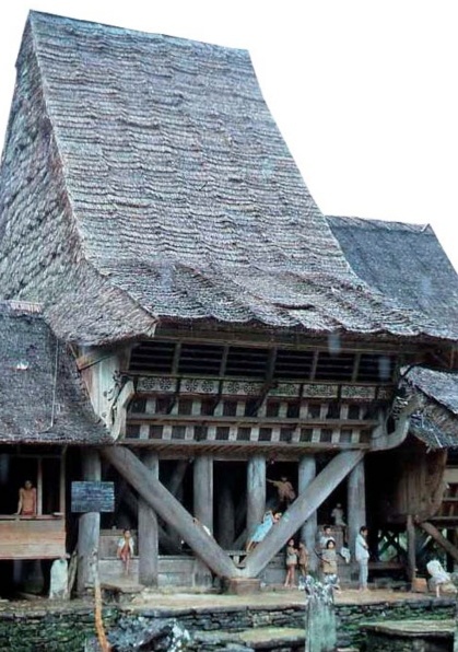 Pas question d’être exhaustive sur l’habitat traditionnel de l’île de Nias, bien sûr ! Sa particularité a donné lieu à de nombreuses études et on trouvera des recherches poussées dans les bibliographies déjà données. Sa spécificité a attiré l’attention des architectes car les maisons construites sur une structure complexe de pilotis verticaux et obliques ont la particularité de bien résister aux tremblements de terre.