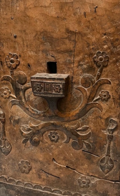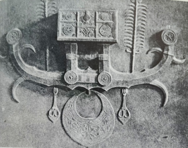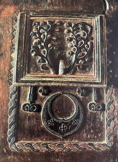 Ci-après un autre panneau beaucoup moins stylisé mais avec la présence toujours étonnante d’un coffret sculpté en haut relief. Il serait intéressant d’étudier les iconographies d’autres panneaux, par exemple de ceux présents dans les collections du National Museet de Copenhague provenant des collectes d’Agner Moller (ci-après en noir & blanc).