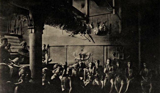 Photo 1 : Intérieur de l’omo sebua de Bawomataluo © Schröder, 1917.