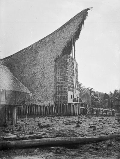Photo 1 : Intérieur d’une maison longue (ravi), le 17 octobre 1914 à Maipua © Kathleen Haddon – MAA Cambridge N.35951.KH