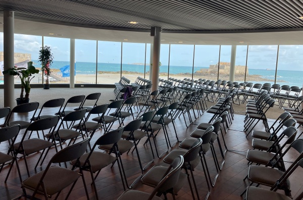 À peine arrivée du TGV en provenance de Paris, je m’installe face à l’immensité marine, au cœur de la rotonde Surcouf du Palais du Grand Large. Et déjà, le voyage commence. Mon regard se perd dans cet horizon inébranlablement droit, où la mer grise et calme épouse un ciel uniforme, comme une invitation à l’ailleurs. À elle seule, cette contemplation est une source de bonheur.
