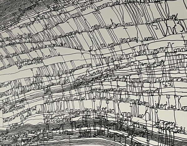 Dans l' »art brut », il est frappant cependant de constater que nombre de ses réalisations révèlent une véritable peur du vide, comme si l’expression devait absolument s’imposer, envahir l’espace. Cette parole intérieure, si impérieuse, semble ne pouvoir émerger qu’à travers une graphie serrée, étouffante, quasi illisible ; puisqu’elle traduit l’in-advenu.