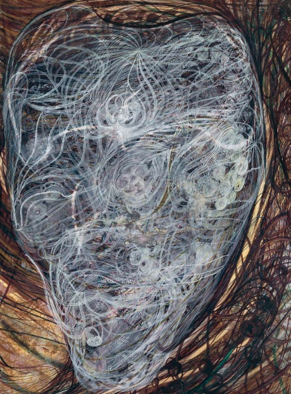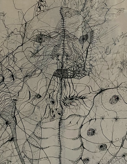 C’était aussi l’occasion de renouer avec les visages tourmentés d’Unica Zürn, un ensemble d’identités fragmentées qui nous entraînent vers le gouffre de ses personnalités. À l’opposé le visage de Georgiana Houghton nous engage dans un ailleurs impalpable : des formes fluides surgissent de la main médiumnique de l’artiste.