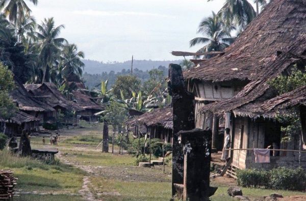 L'habitat traditionnel de l'île de Nias, célèbre pour sa résistance aux séismes grâce à des maisons sur pilotis, a été étudié en profondeur. Les photographies de villages comme Bawomataluo et Onohôndro, prises à différentes époques, montrent des changements significatifs, notamment dans la structure des toits et l'ajout de fils électriques.