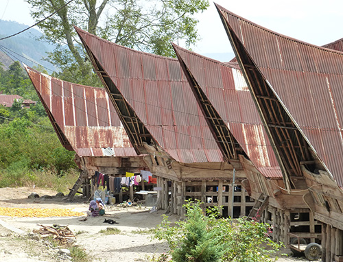 Le village de Gurusina, au cœur de l'île de Florès, illustre la culture Ngadha, marquée par une hiérarchie clanique complexe. Les maisons abritent plusieurs familles et sont ornées de ngadhu pour les ancêtres masculins et de bhaga pour les ancêtres féminins.
