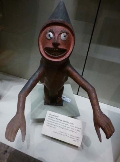 L'article explore la sculpture henta-koï des îles Nicobar, réalisée pour aider les chamanes à neutraliser les esprits malveillants. La sculpture, décrite comme terrifiante avec un visage expressif, est analysée. Des sculptures similaires, les kareau, plus douces, servent également de protections.