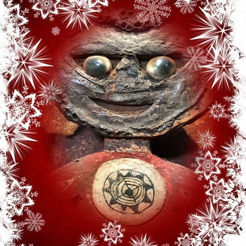 Joyeuses Fêtes ! Photo : réalisée à partir de la tête d'une statue Ngbaka © Musée de Tervuren EO.0.0.9200, photo de l'auteure, 2019.