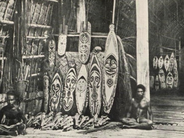 Albert Buell Lewis, chef de l'expédition du Field Museum, a passé une brève période en 1912 dans les régions du Golfe. Son livre de 1931, "Carved and Painted designs from New Guinea," inclut ses photographies de terrain et de collectes, illustrant son travail impressionnant.